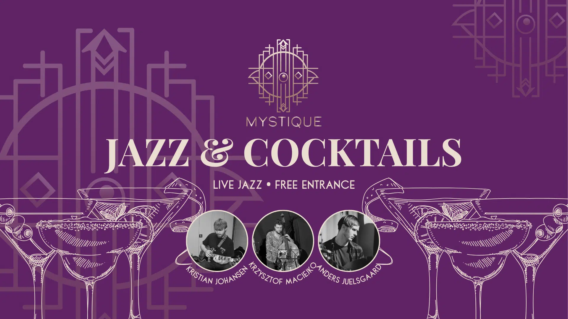 Få en smagsprøve på vores nye, eksklusive cocktailbar Mystique til en aften med levende jazz, drinks og hyggelig lounge-stemning – inden den officielle åbning.